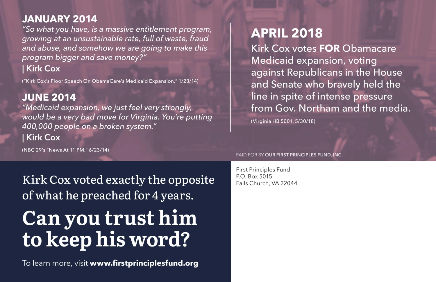 In the Republican nominating convention for the 2021 Virginia Governor’s race, CMS was retained by an independent expenditure committee to highlight the not-so-conservative legislative agenda of the former Speaker of the House, Kirk Cox, then a candidate for governor.